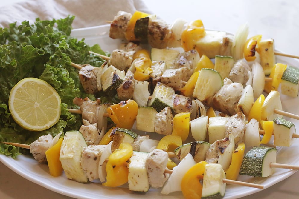 The stove top sear gives these chicken kabobs that grill taste while baking them makes it super easy to make any day of the week.