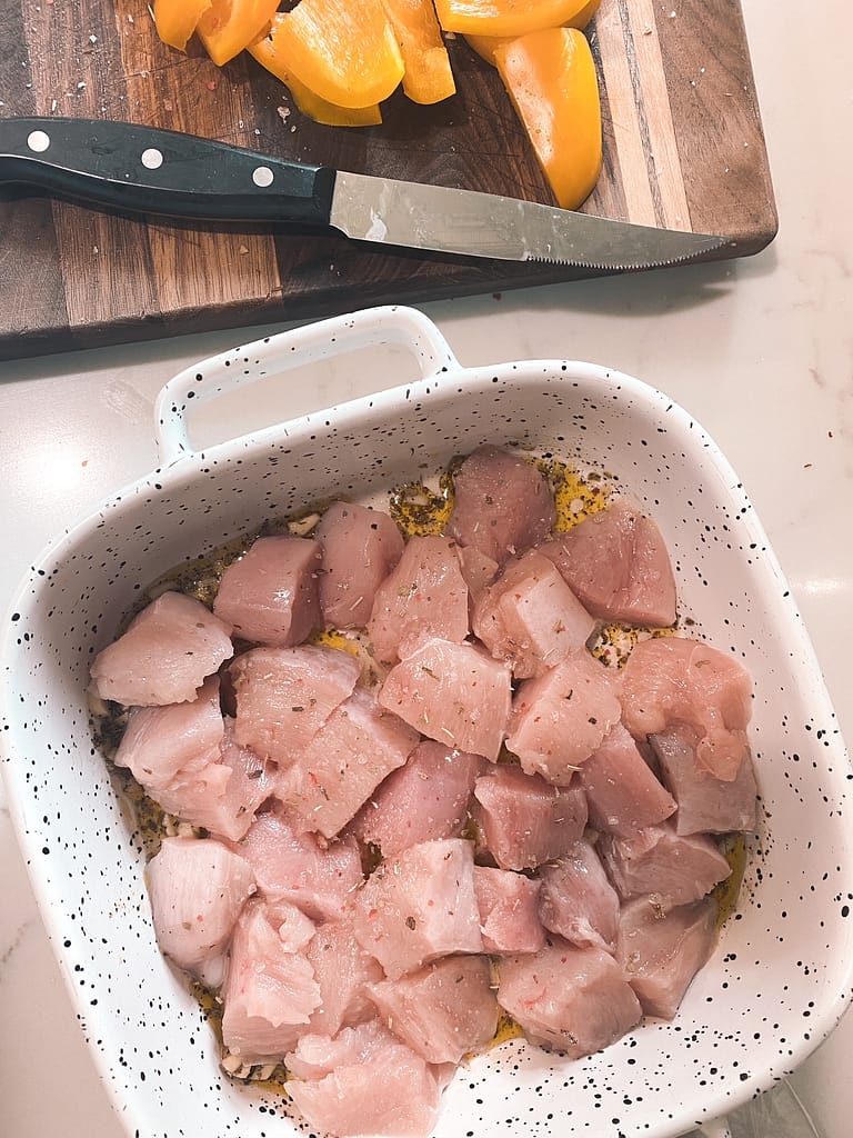 My family devours these baked chicken kabobs. And of course you can choose steak or shrimp if you want to change up the protein. Part of the fun of kabobs is how you can make them your own!
