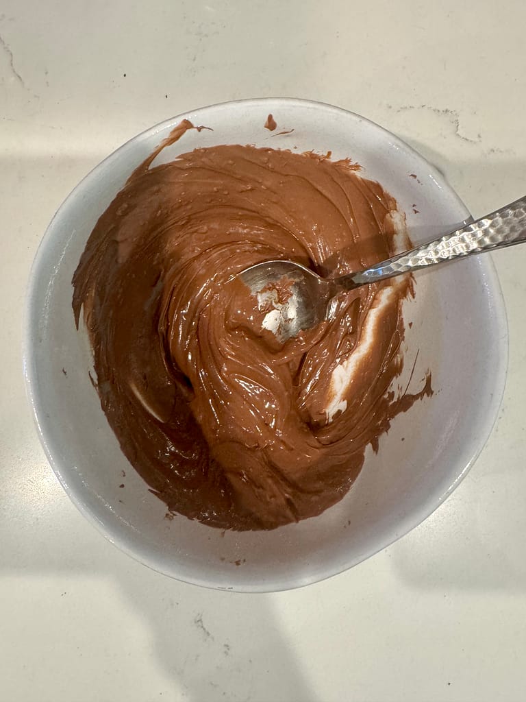 Stir with a spoon, then melt again in the microwave for 30 seconds. Mix until smooth.