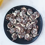 Sprinkle chocolate bananas with coconut flakes.
