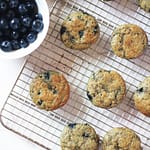 Fold in blueberries (and nuts if using) carefully so they don’t break and turn the batter purple.