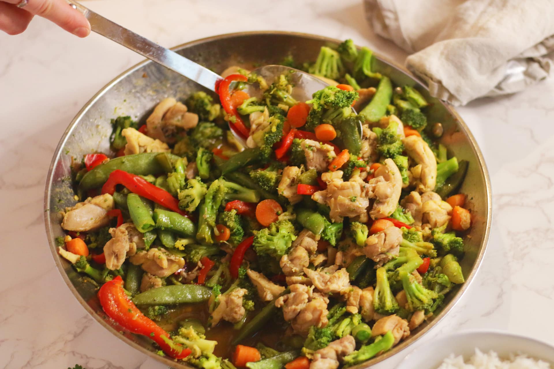• Veggie or Chicken Stir Fry: Quick sauté of your favorite veggies + protein (shrimp, tofu, or chicken) with tamari or coconut aminos. Serve over rice or noodles.