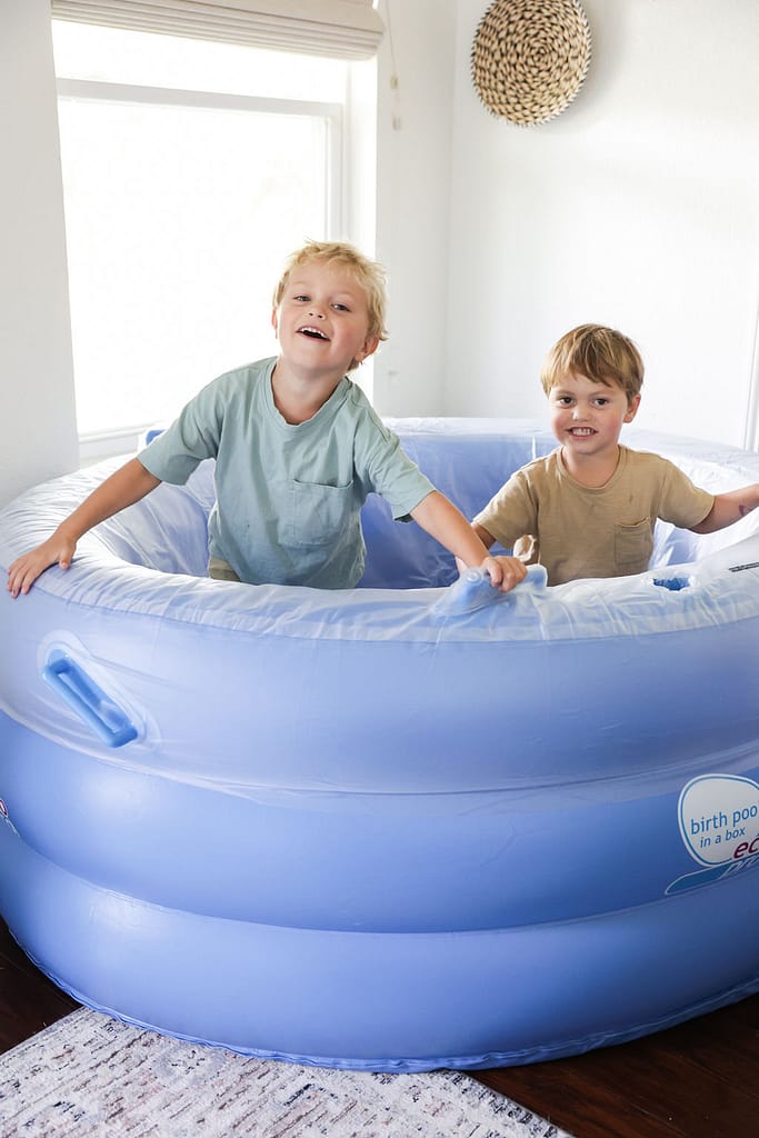 Around 11am my friend Lyndsay arrived. She came to take photos and offer help. Soon after that, my doula, Courtney, arrived. It felt like we were just having a girls day as we sat on the bed chatting for about an hour. My contractions were very, very mild and a little sporadic, felt more like braxton hicks and I was hoping to kick them up a notch. We decided to go on a walk to see if that helped move things along. We took a short 10 minute walk in the 100 degree weather before we wanted to go back inside. Lyndsay took the boys upstairs to watch a movie as Courtney and I brainstormed ways to make the contractions stronger. We slowly made our way upstairs to the movie.