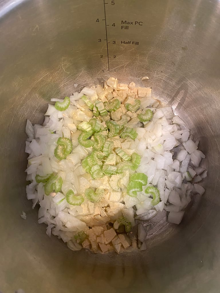 In your Instant pot, add oil, onion, celery and garlic